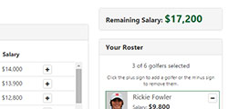 - Salary Cap Pick Sheet—Each golfer will have a salary assigned to them based on their current World Golf Ranking. Participants will be assigned a fixed salary cap they must stay under in order to create their 6-player roster.