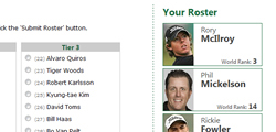 If you choose the tier based pick sheet, your members will be asked to pick one player from each of six tiers (or flights). The flights are based on the World Golf Ranking of the PGA Players in the field for that tournament. For example, Tier #1 will be comprised mostly of players in the Top 10 in the world, Tier #2 of players between 11-20 in the world, etc.